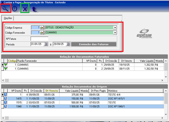 Contas a Pagar – Renegociação de Títulos – Exclusão